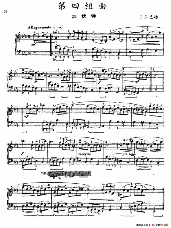 第四组曲:降E大调·加伏特钢琴谱,简谱"