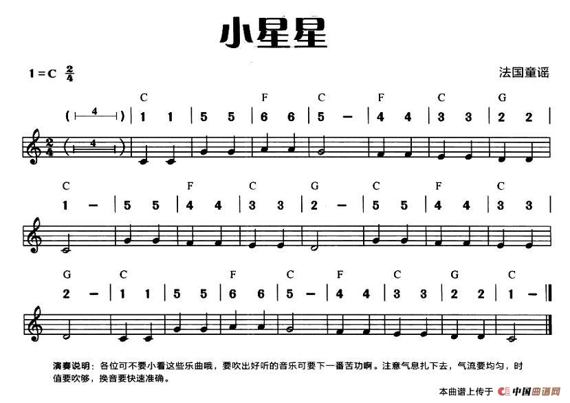 小星星口琴谱(线简谱混排版),小星星简谱"