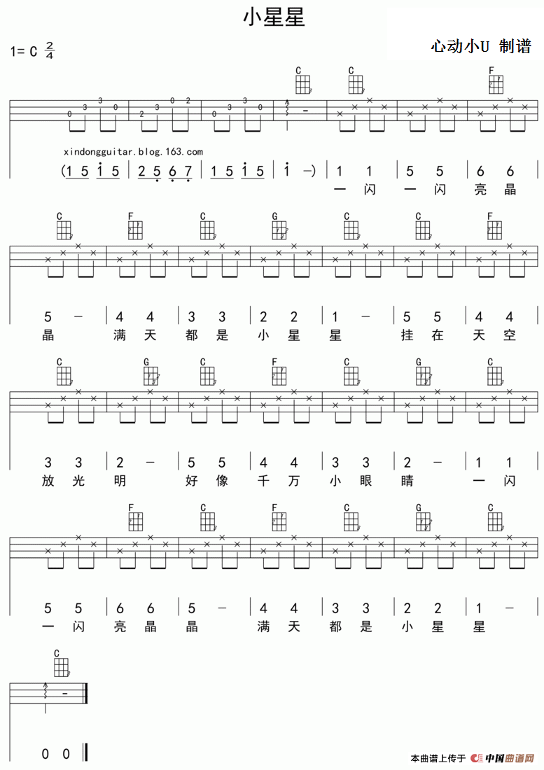 小星星吉他谱(尤克里里弹唱谱),小星星简谱"