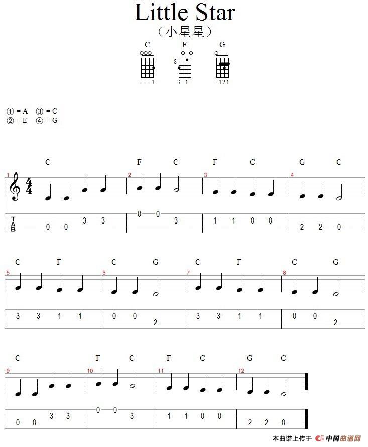 Little Star(小星星)吉他谱(尤克里里指弹谱),Little Star(小星星)简谱"