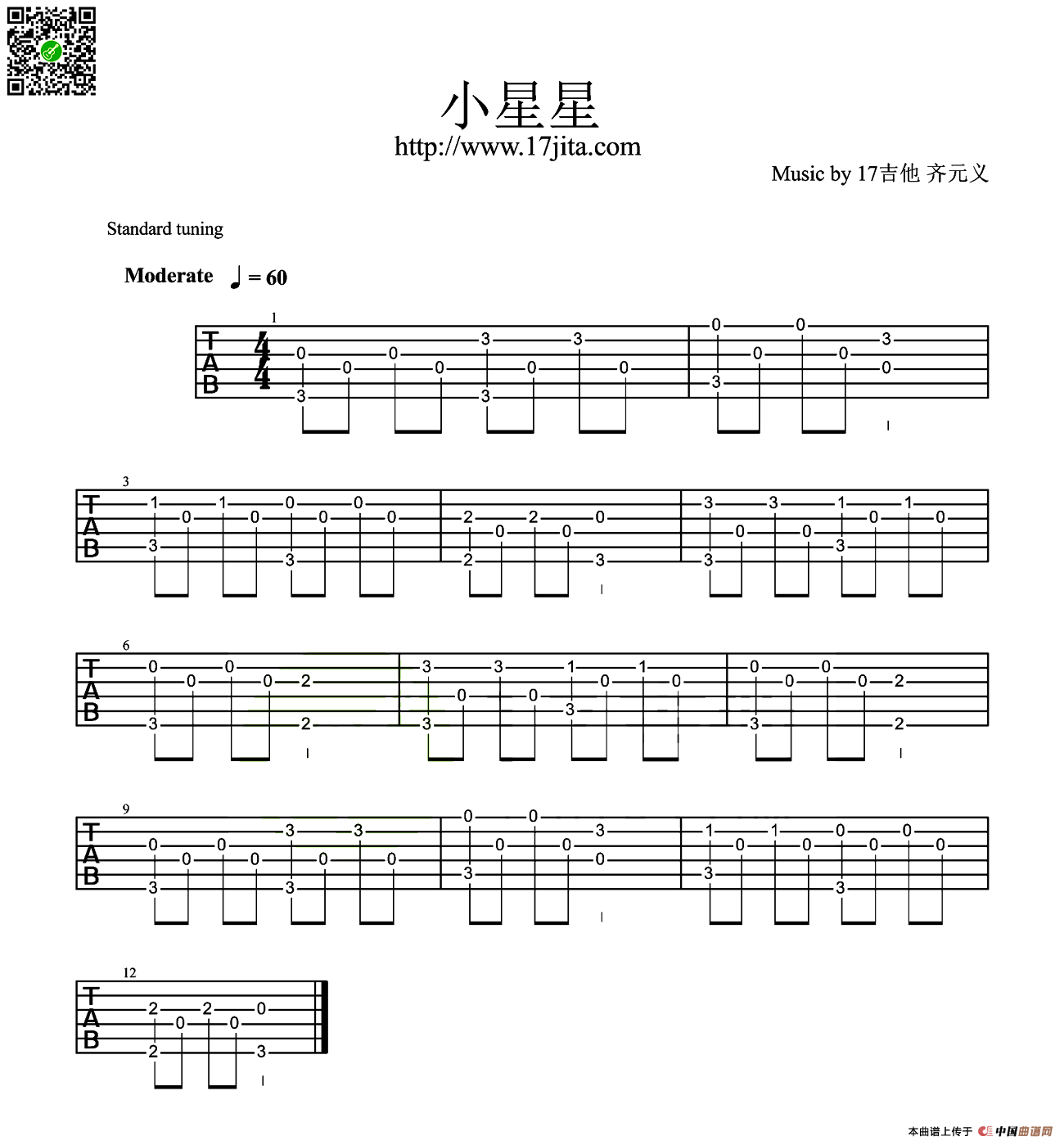 小星星 亮晶晶吉他谱(独奏曲),小星星 亮晶晶简谱"