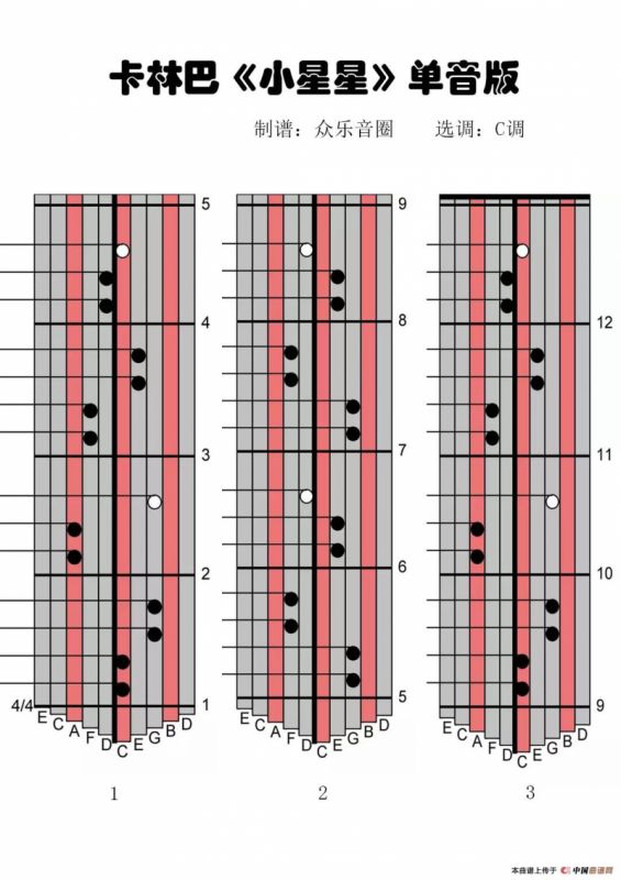 小星星单音版(拇指琴卡林巴琴演奏谱),小星星单音版简谱"