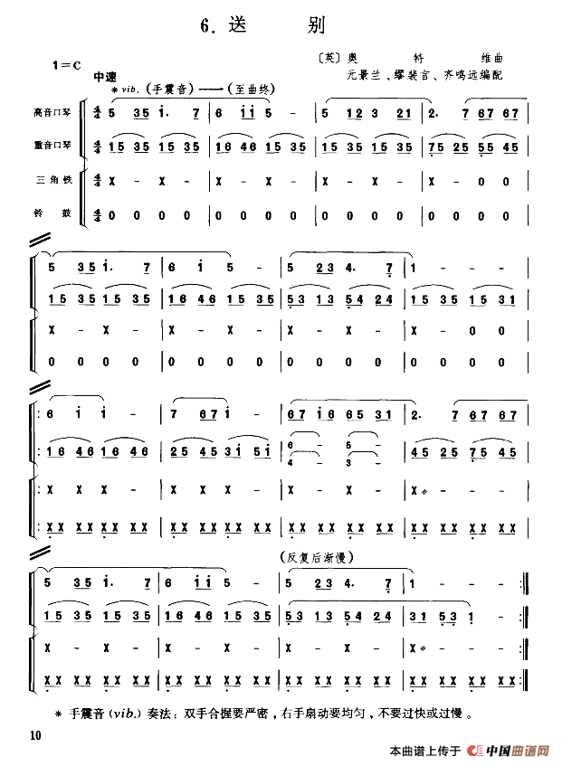 送别 口琴谱(电影《城南旧事》插曲),送别简谱"