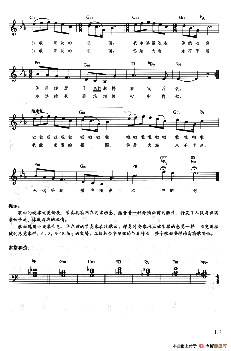 我和我的祖国电子琴谱(带歌词、提示版),我和我的祖国简谱"