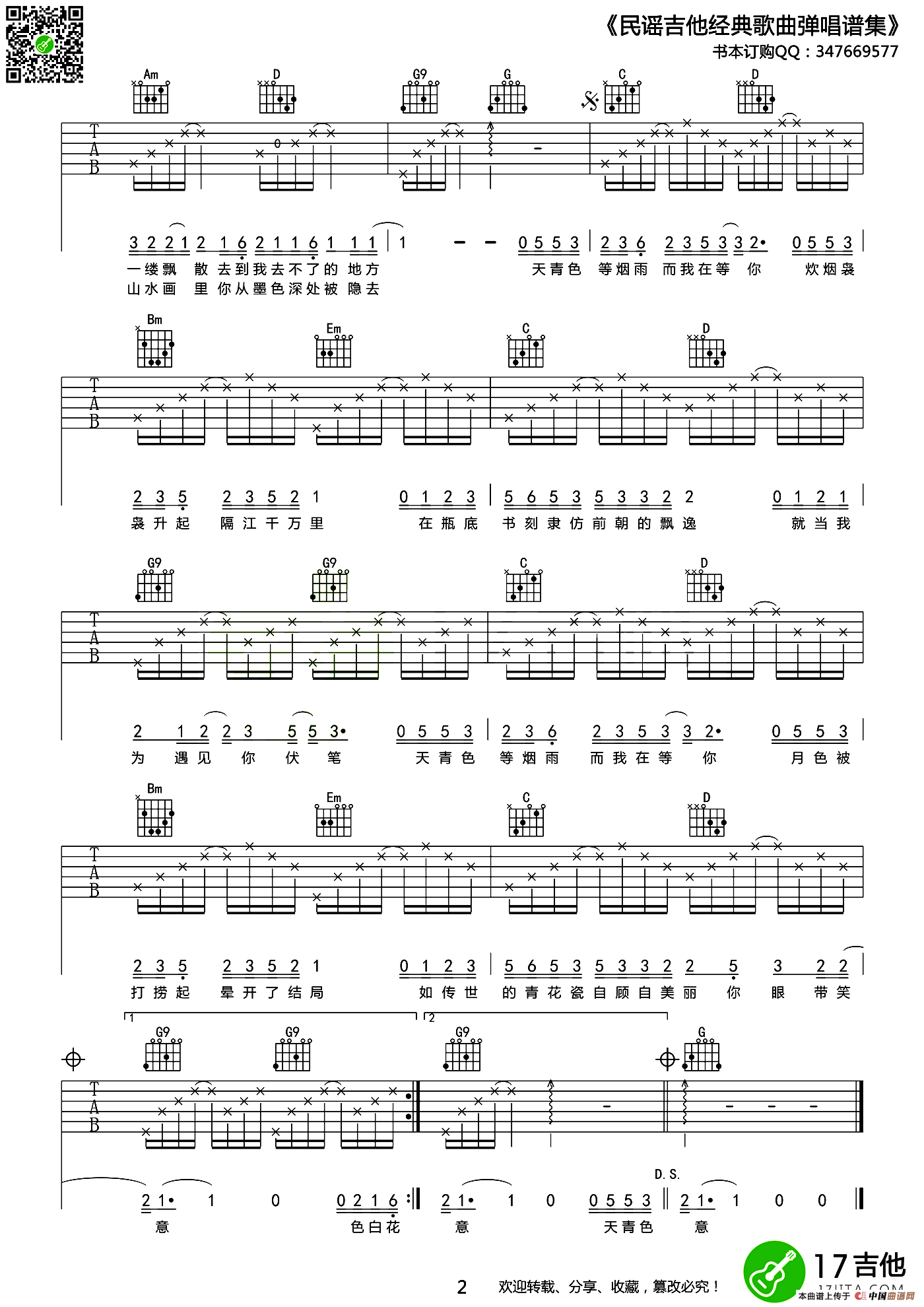 青花瓷吉他谱(3个版本),青花瓷简谱"
