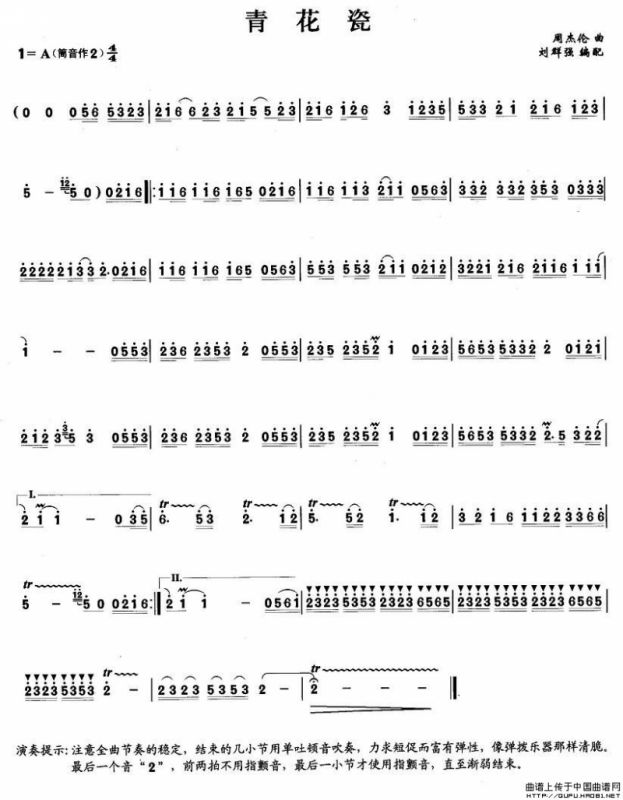青花瓷长笛谱(C转#C),青花瓷简谱"