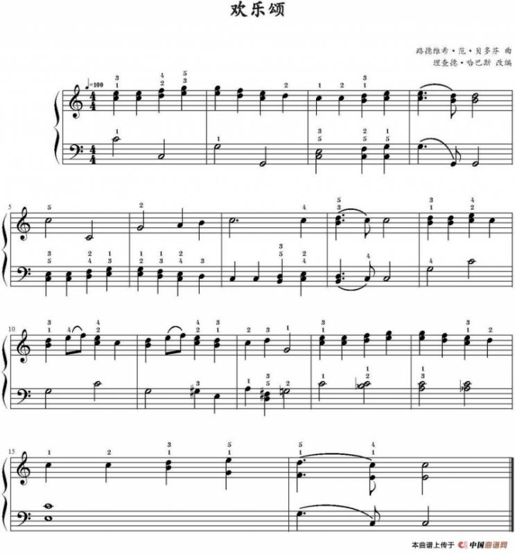 欢乐颂 钢琴谱(理查德·哈巴斯改编版),欢乐颂简谱"