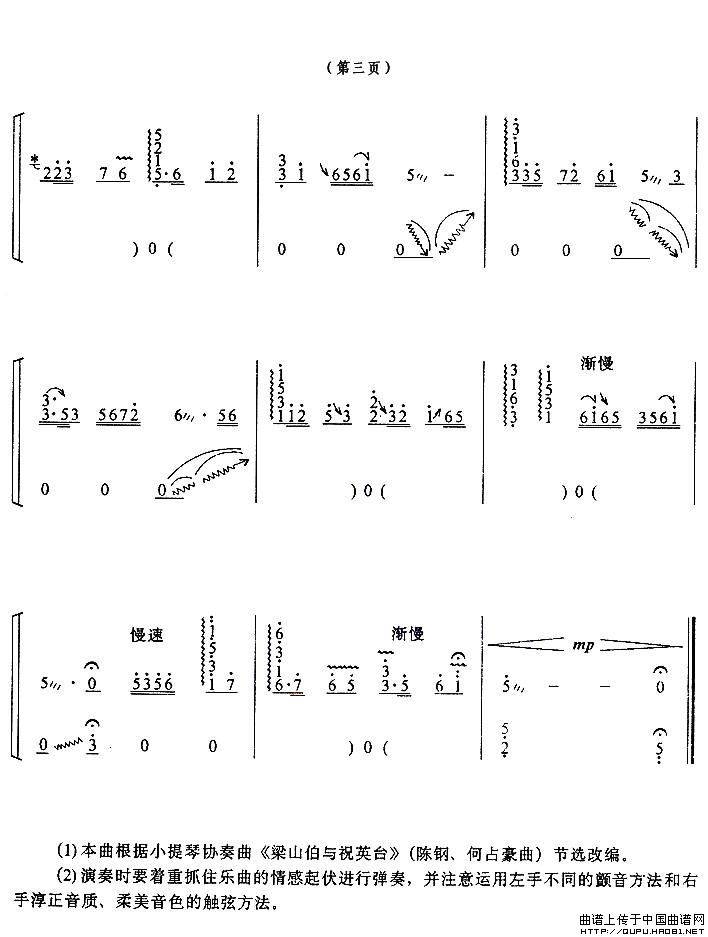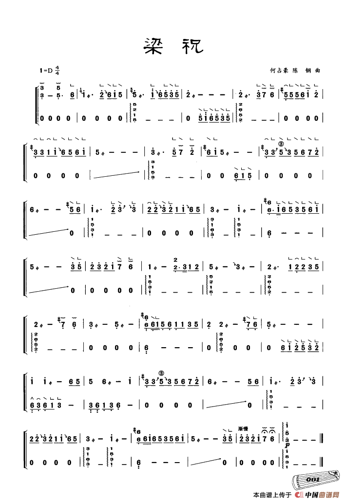 古筝独奏:梁祝古筝谱/古琴谱,古筝独奏:梁祝简谱"