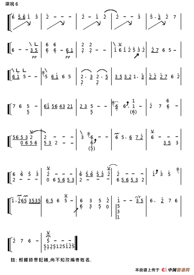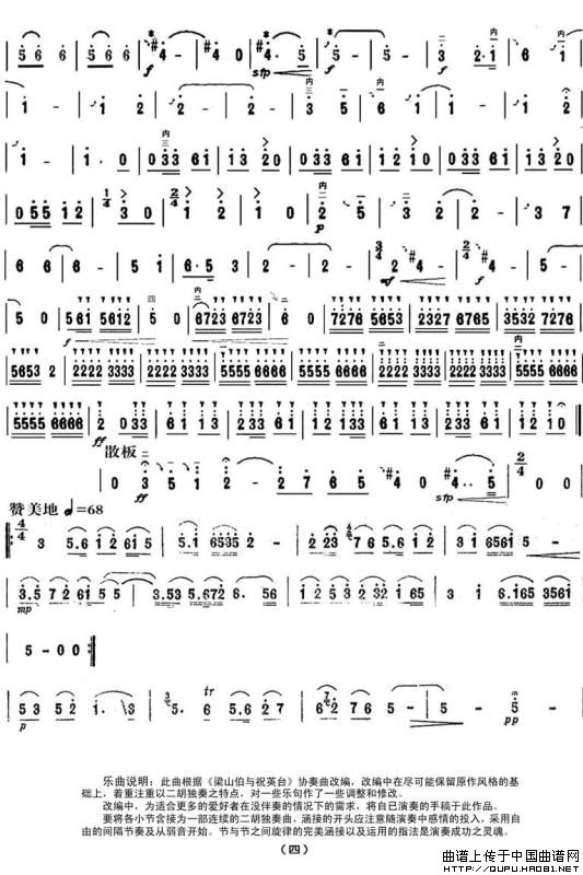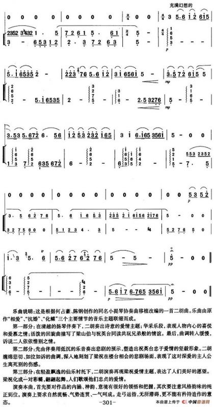 梁祝胡琴谱(五线谱),梁祝简谱"