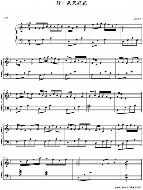 好一朵茉莉花钢琴谱,好一朵茉莉花简谱"