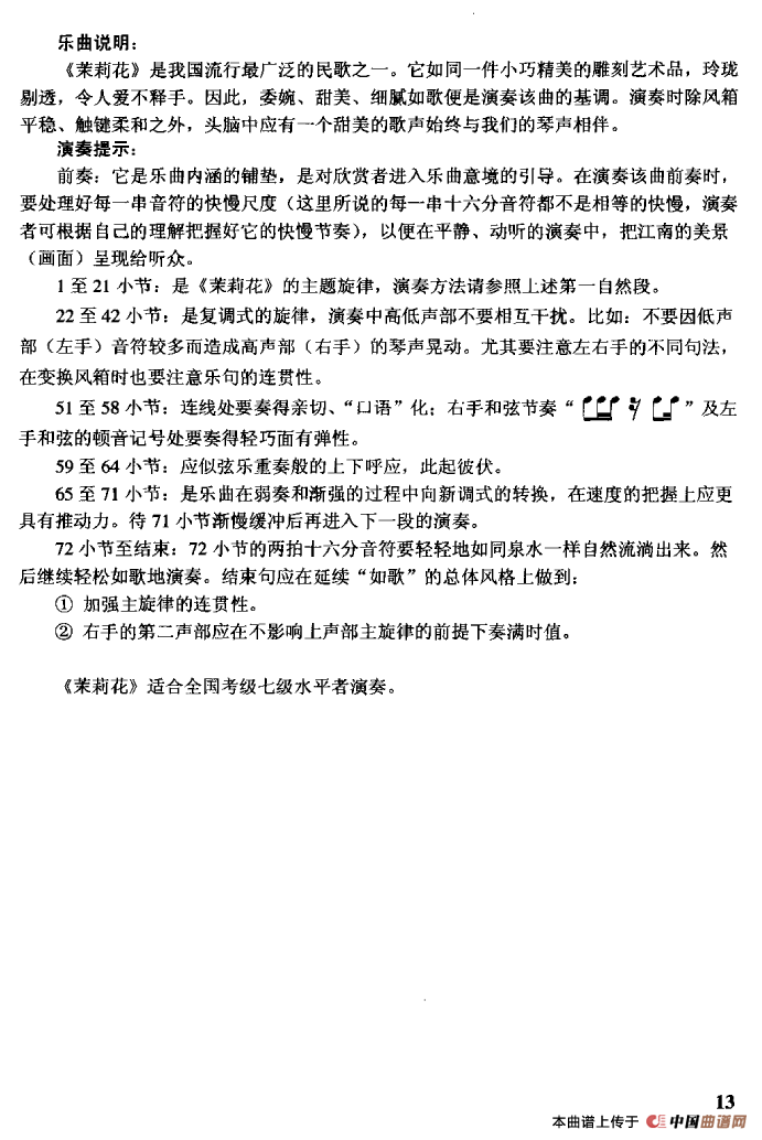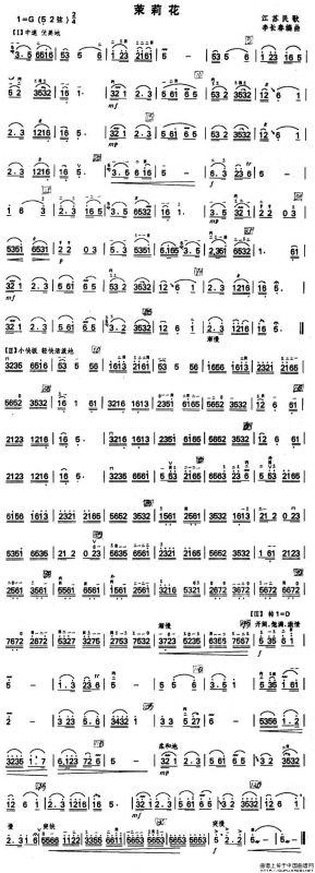 柳琴考级曲目二级:茉莉花,柳琴考级曲目二级:茉莉花简谱"