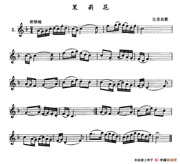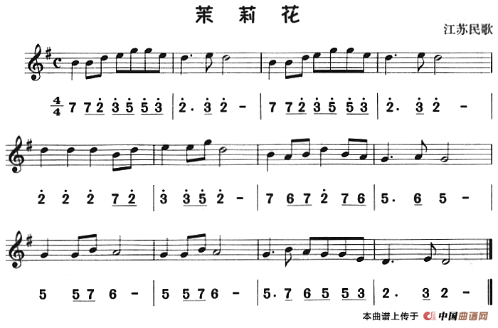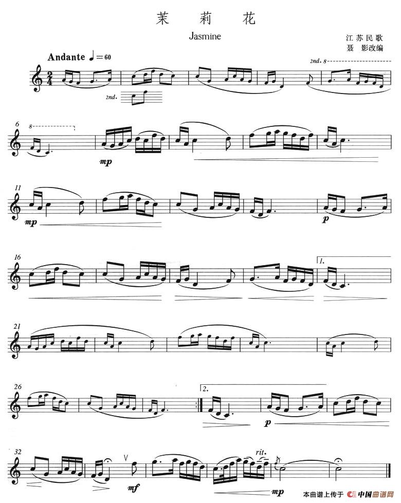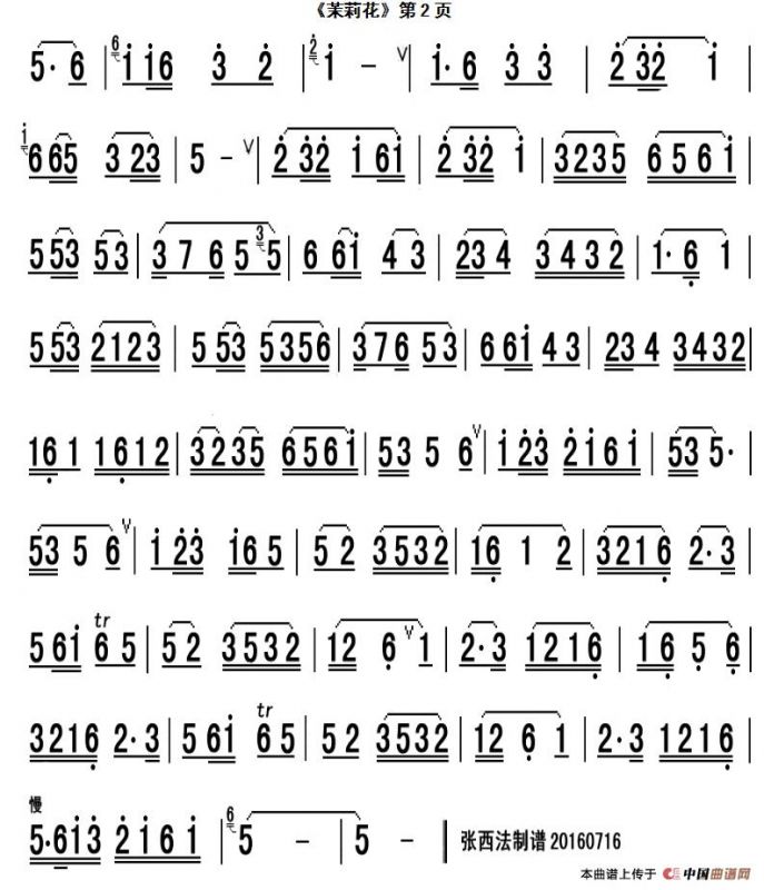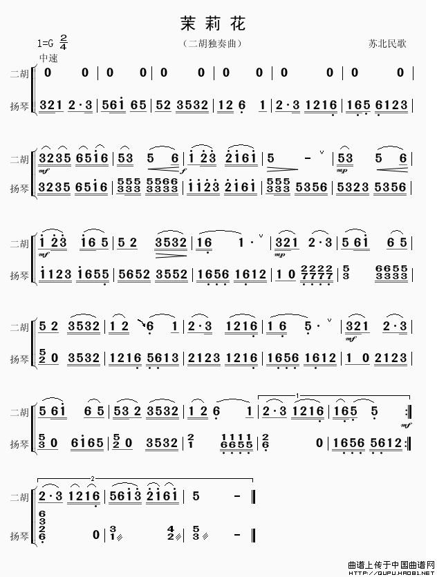 茉莉花胡琴谱(五线谱),茉莉花简谱"