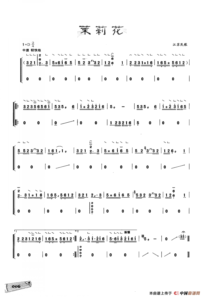 古筝独奏:茉莉花古筝谱/古琴谱(江苏民歌),古筝独奏:茉莉花简谱"