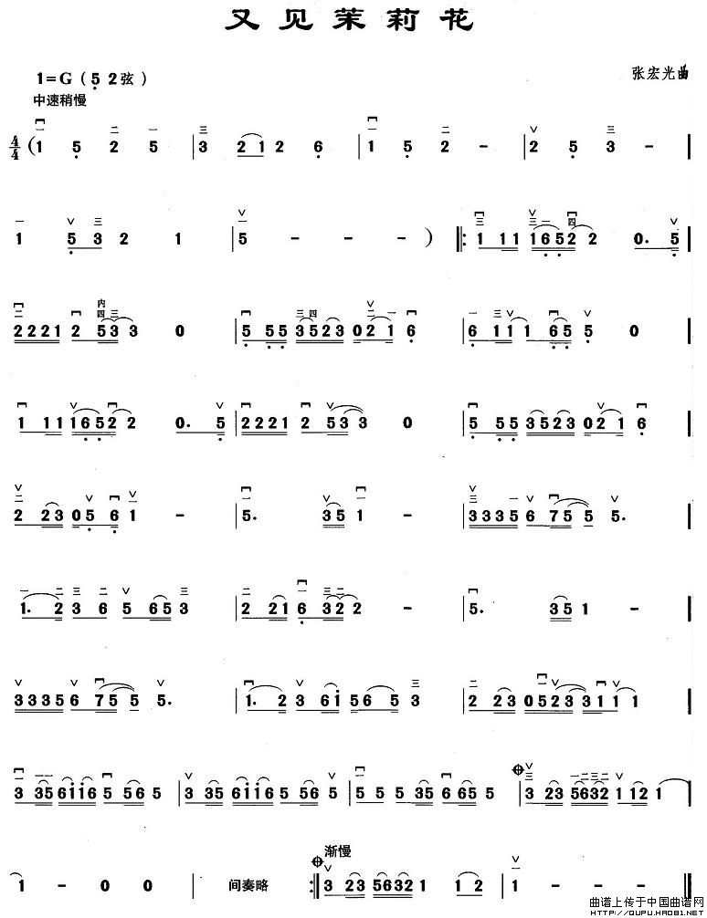 又见茉莉花胡琴谱,又见茉莉花简谱"