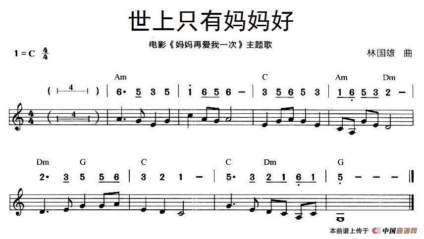 世上只有妈妈好吉他谱(尤克里里指弹谱),世上只有妈妈好简谱"
