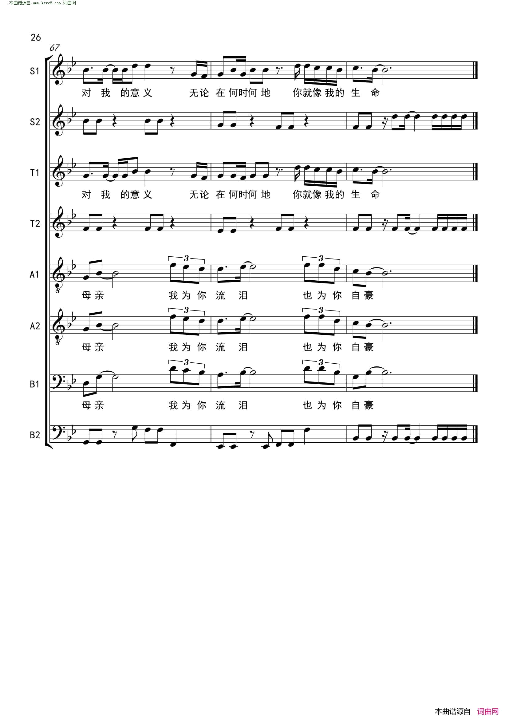 我爱你中国(五线谱、八声部)简谱,演唱中央人民广播电台合唱团,歌词"