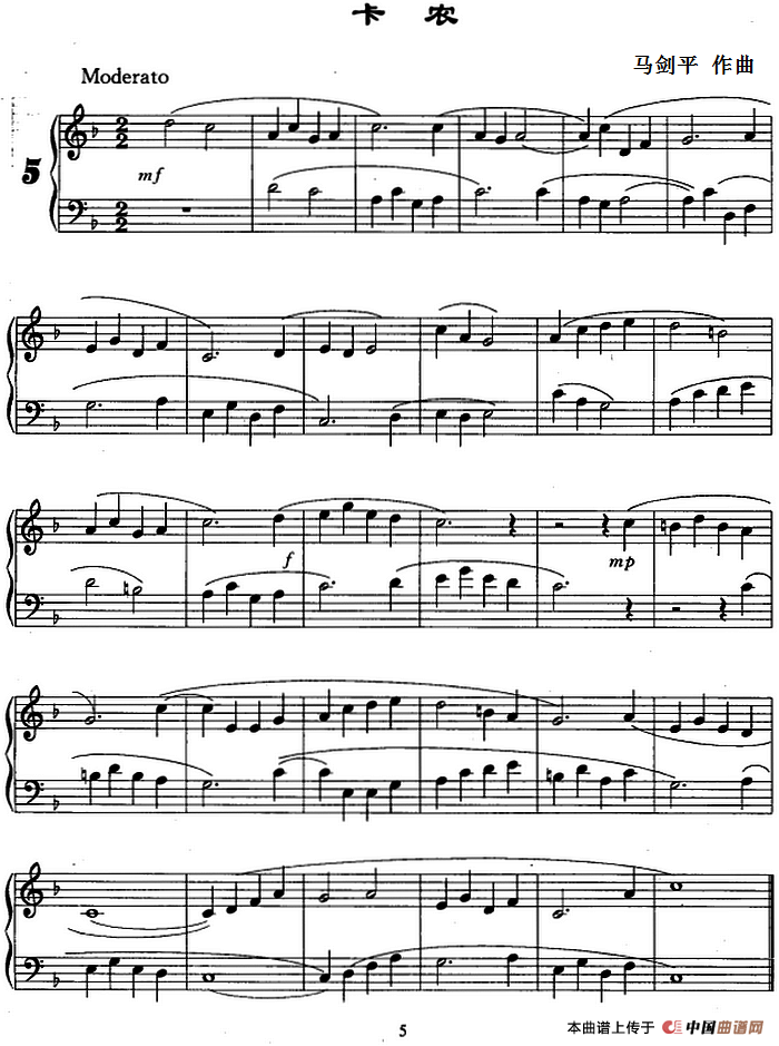 卡农钢琴谱(马剑平作曲版),卡农简谱"