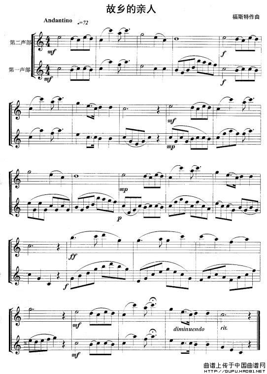 故乡的亲人长笛谱(重奏),故乡的亲人简谱