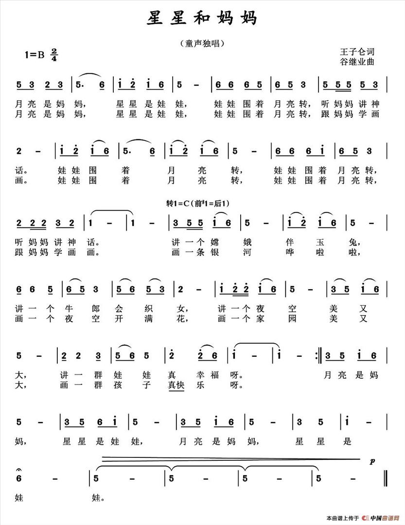 星星和妈妈简谱,星星和妈妈歌曲简介