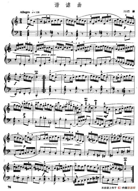 谐谑曲手风琴谱(J·S·巴赫作曲版),谐谑曲简谱