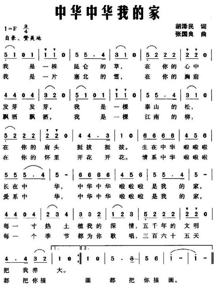 中华中华我的家简谱,中华中华我的家歌曲简介