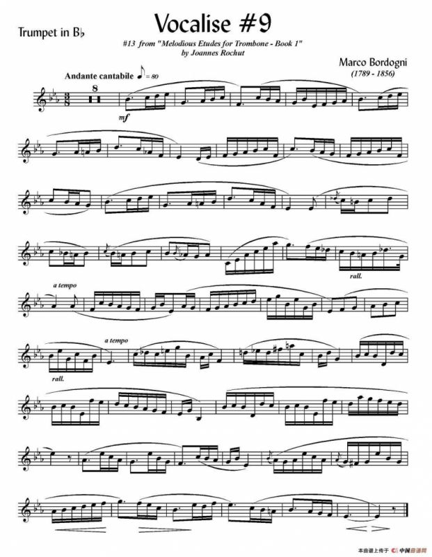 Bordogni - Vocalise #9(小号)铜管谱,简谱"
