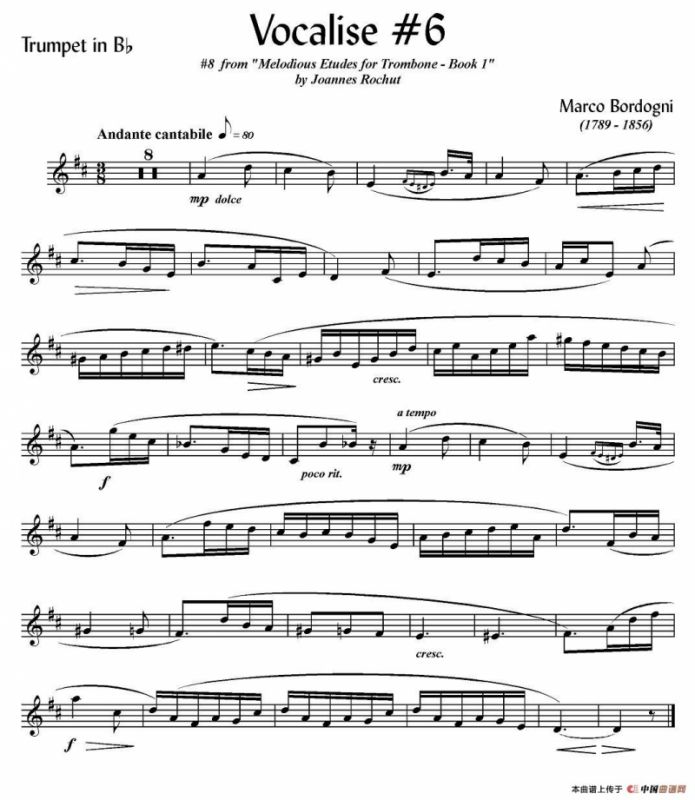 Bordogni - Vocalise #6(小号)铜管谱,简谱"