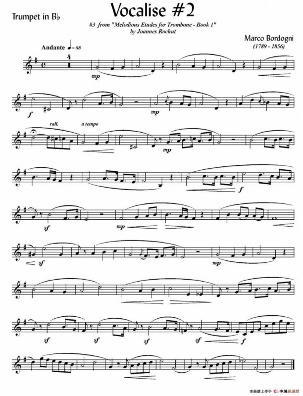 Bordogni - Vocalise #2(小号)铜管谱,简谱"