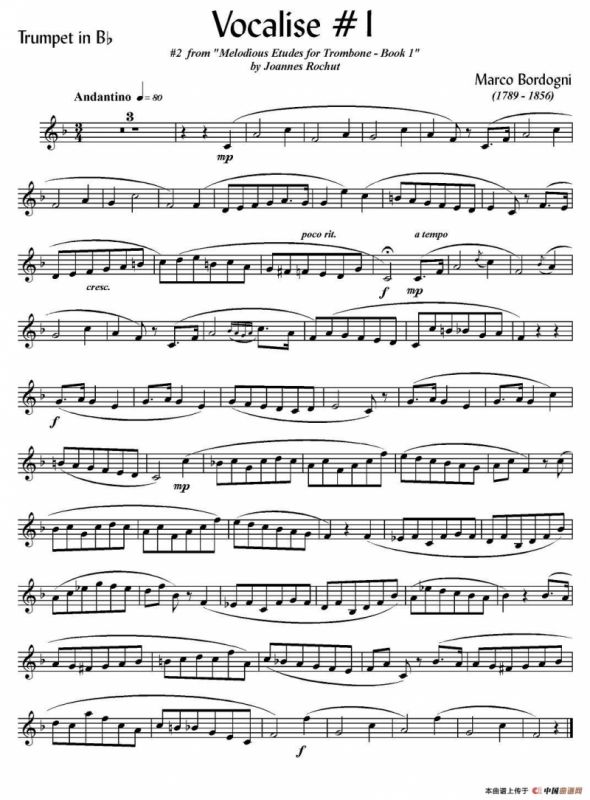 Bordogni - Vocalise #1 (小号)铜管谱,简谱"