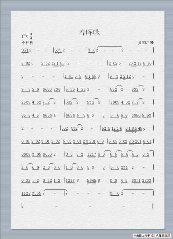 春晖曲笛箫谱(竹笛),春晖曲简谱"
