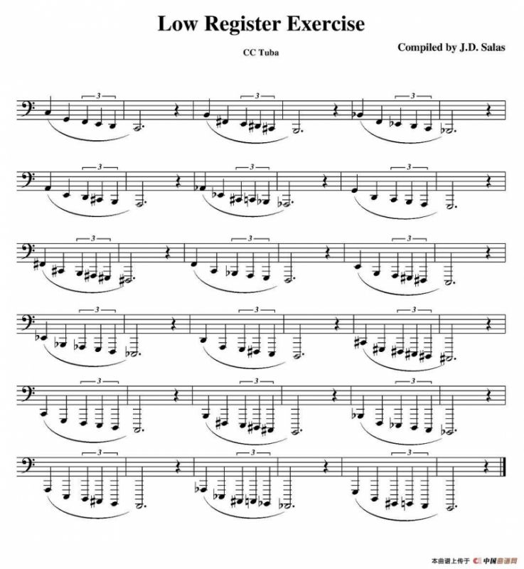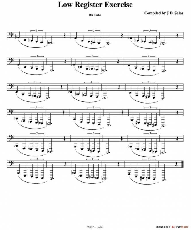 Low Register Exercise- CC Tuba(大号练习教材选曲)铜管谱,简谱"