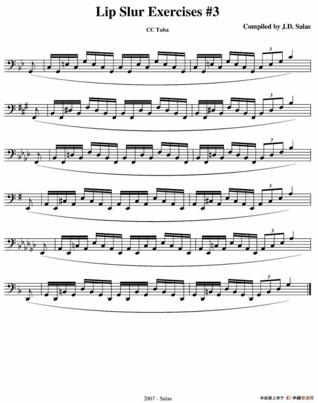 Lip Slur Exercise - C Tuba(大号练习教材选曲)铜管谱,简谱"