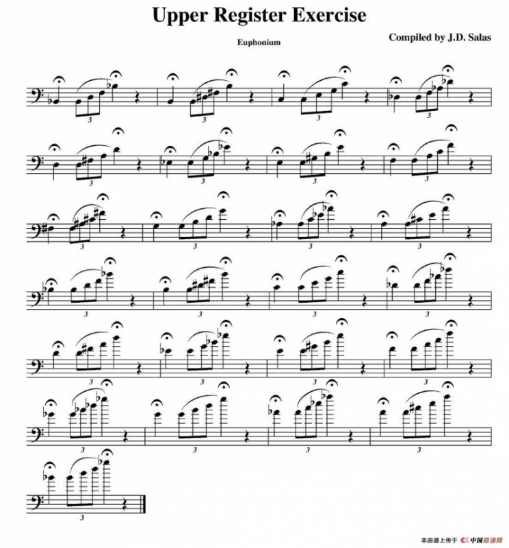 Upper Register Exercise- Euphonium(大号练习教材选曲)铜管谱,简谱"