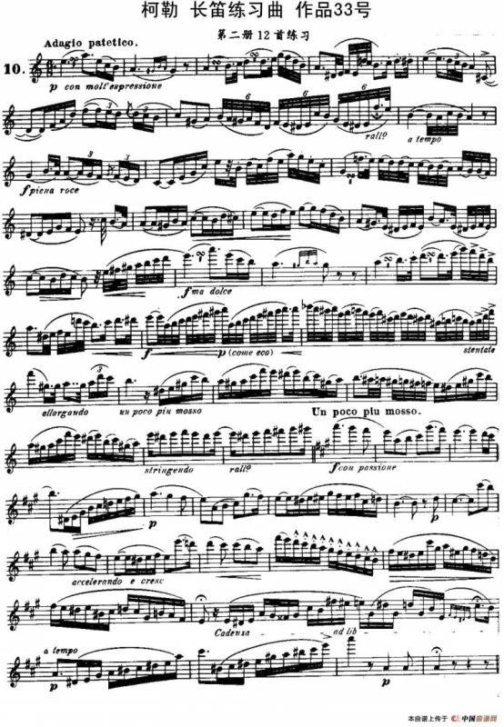 柯勒长笛练习曲作品33号(第二册)(10)长笛谱,简谱"