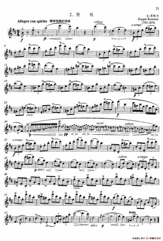 柯勒长笛练习曲作品33号(第三册)(6)长笛谱,简谱"