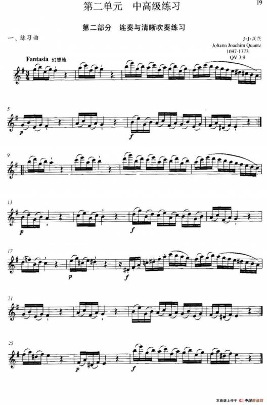 第二单元 中高级练习:连奏与清晰吹奏练习(乐曲部分:幻想曲)长笛谱,简谱"