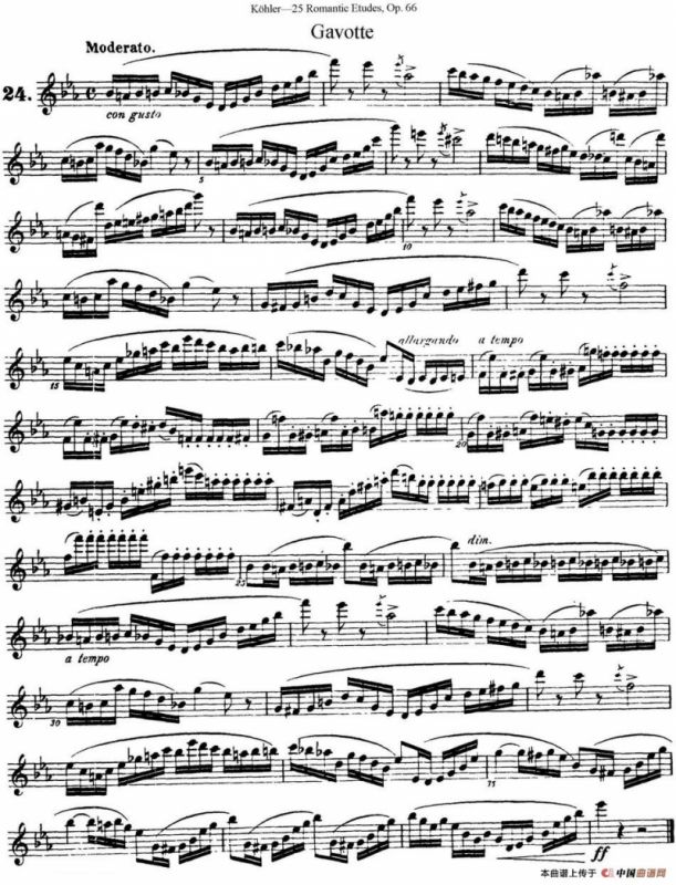 柯勒25首浪漫长笛练习曲作品66号(NO.24)长笛谱,简谱"