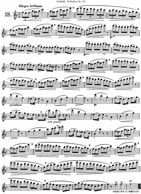 二十首练习曲作品132号之18长笛谱,简谱"