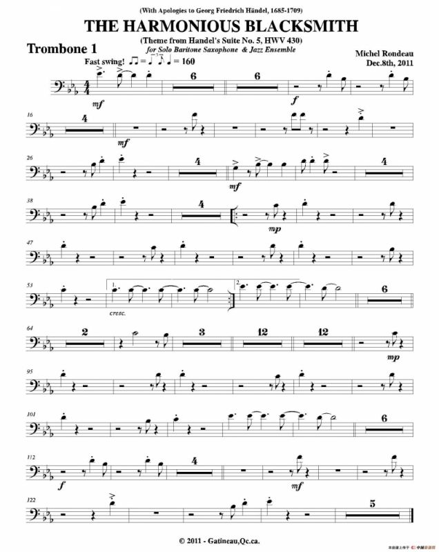 THE HARMONIOUS BLACKSMITH(第三长号分谱)铜管谱,简谱"