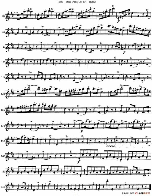 图露三首长笛简易重奏曲Op.104(Flute 2)(NO.2)长笛谱,简谱"