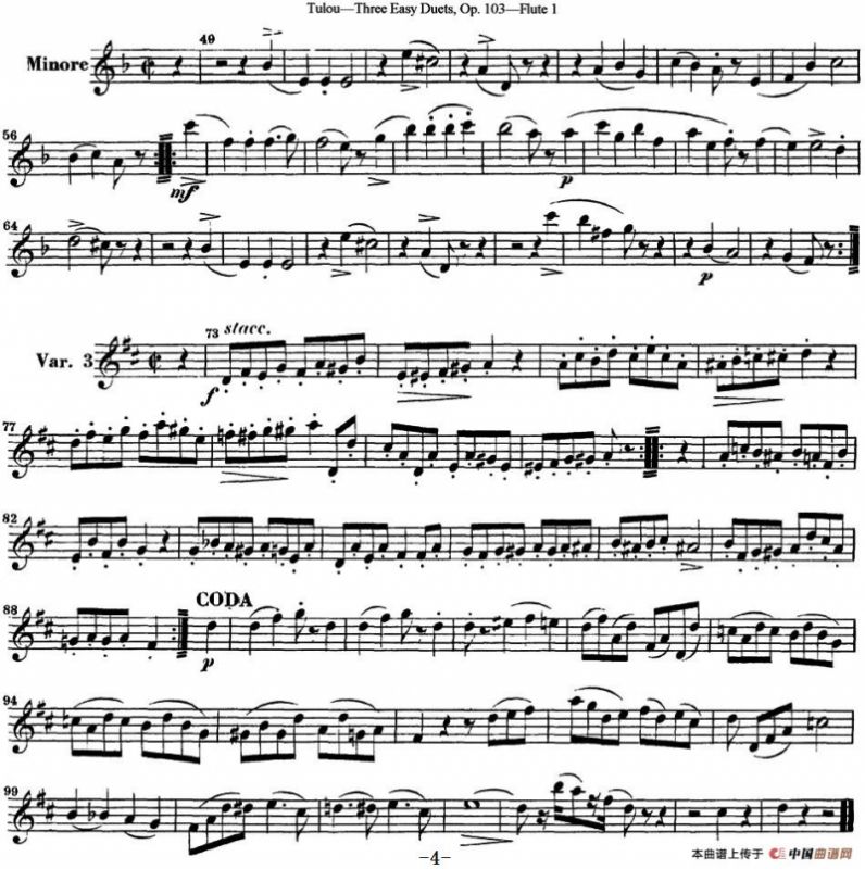 图露三首长笛简易重奏曲Op.103(Flute 1)(NO.3)长笛谱,简谱"