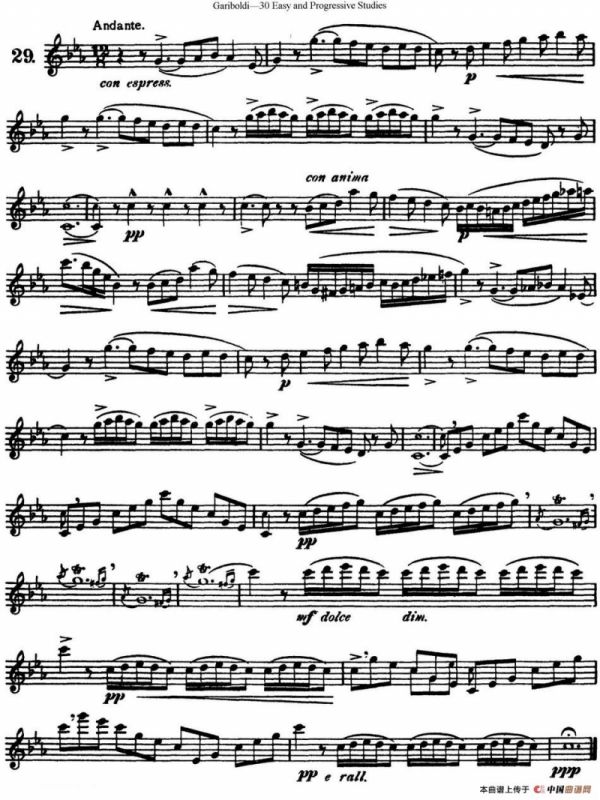 三十首基础及提高练习曲长笛谱(NO.29),三十首基础及提高练习曲简谱"