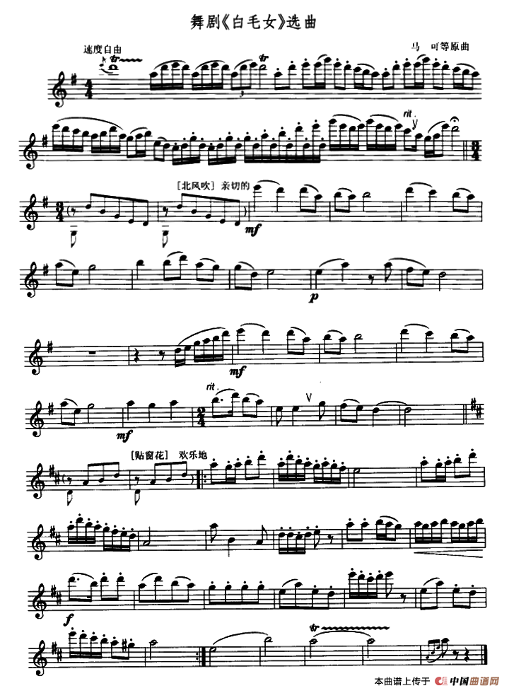 舞剧《白毛女》选曲长笛谱,舞剧《白毛女》选曲简谱"