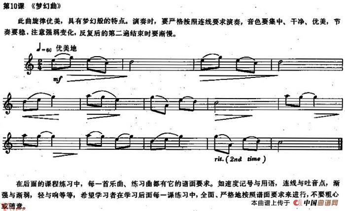 长笛练习曲100课之第10课 长笛谱(梦幻曲),长笛练习曲100课之第10课简谱"