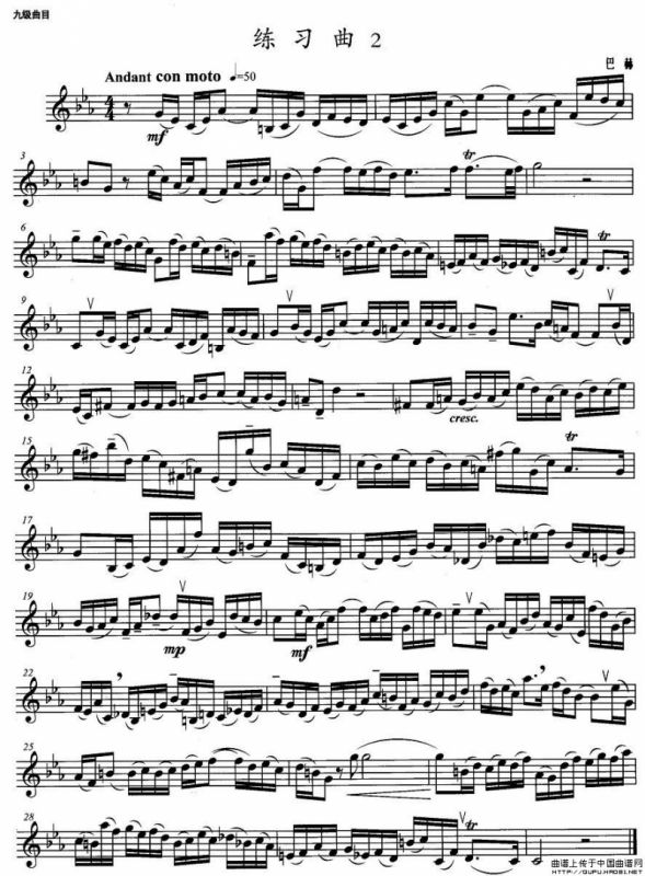 小号考级六级:练习曲铜管谱(2),小号考级六级:练习曲简谱"