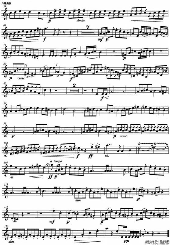小号考级八级:音乐会练习曲铜管谱,小号考级八级:音乐会练习曲简谱"
