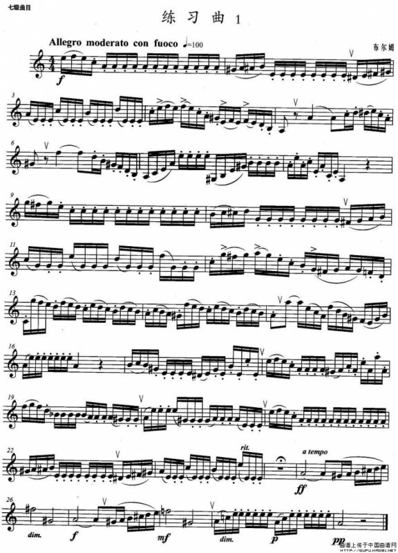 小号考级七级:练习曲铜管谱(1),小号考级七级:练习曲简谱"
