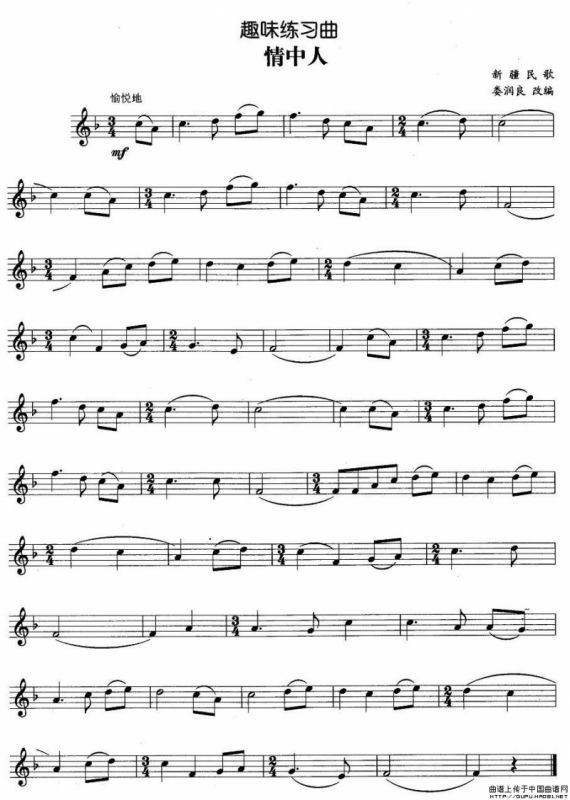 趣味练习曲:情中人铜管谱,趣味练习曲:情中人简谱"