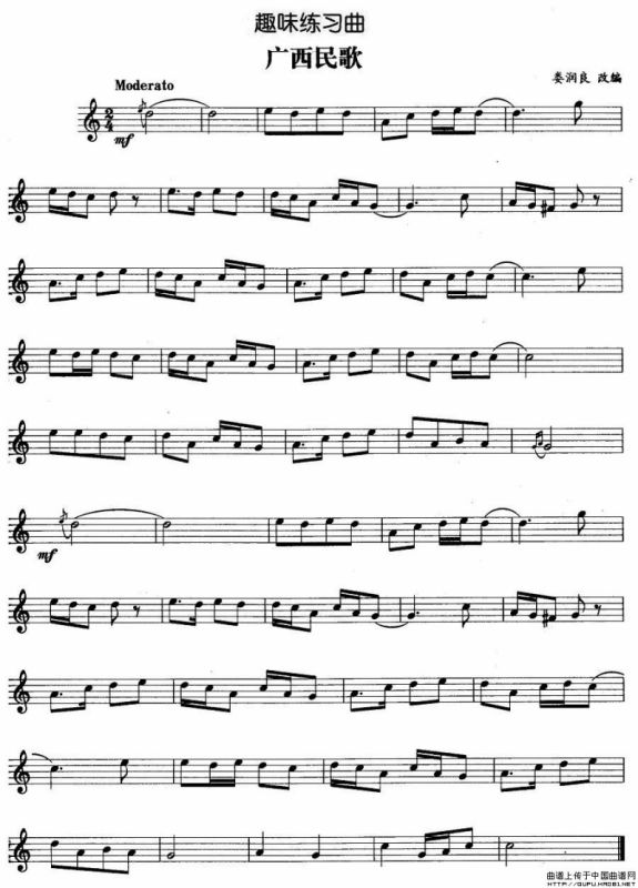 趣味练习曲:广西民歌铜管谱,趣味练习曲:广西民歌简谱"