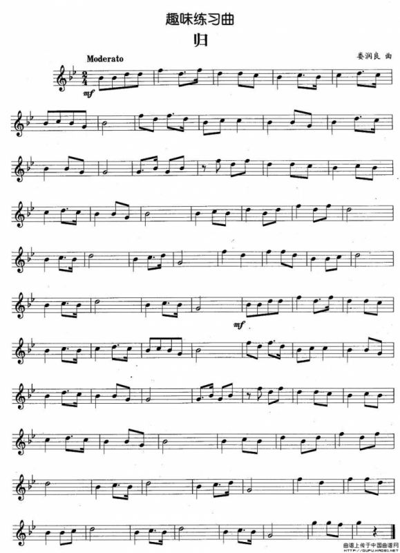 趣味练习曲:归铜管谱,趣味练习曲:归简谱"